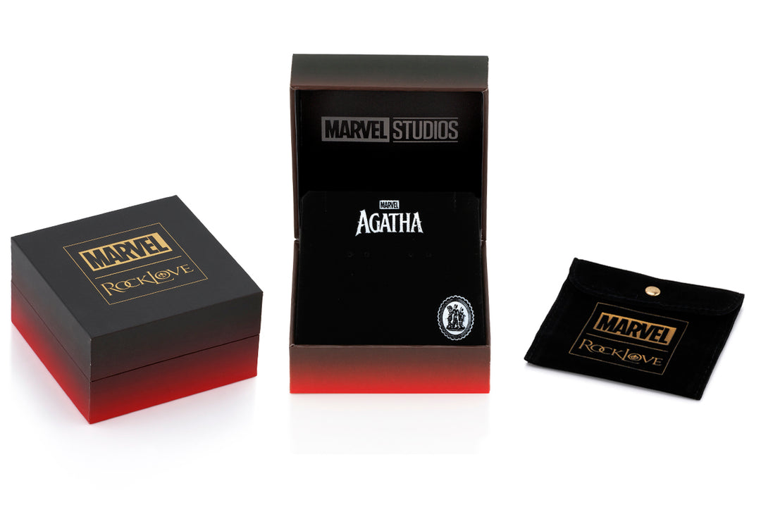 Every Marvel | RockLove jewelry design arrives in signature Collector's Packaging. Featuring black to red ombre exterior, sleek spot varnished art inside, and includes a branded luxury travel pouch, each is perfect for gifting and display.