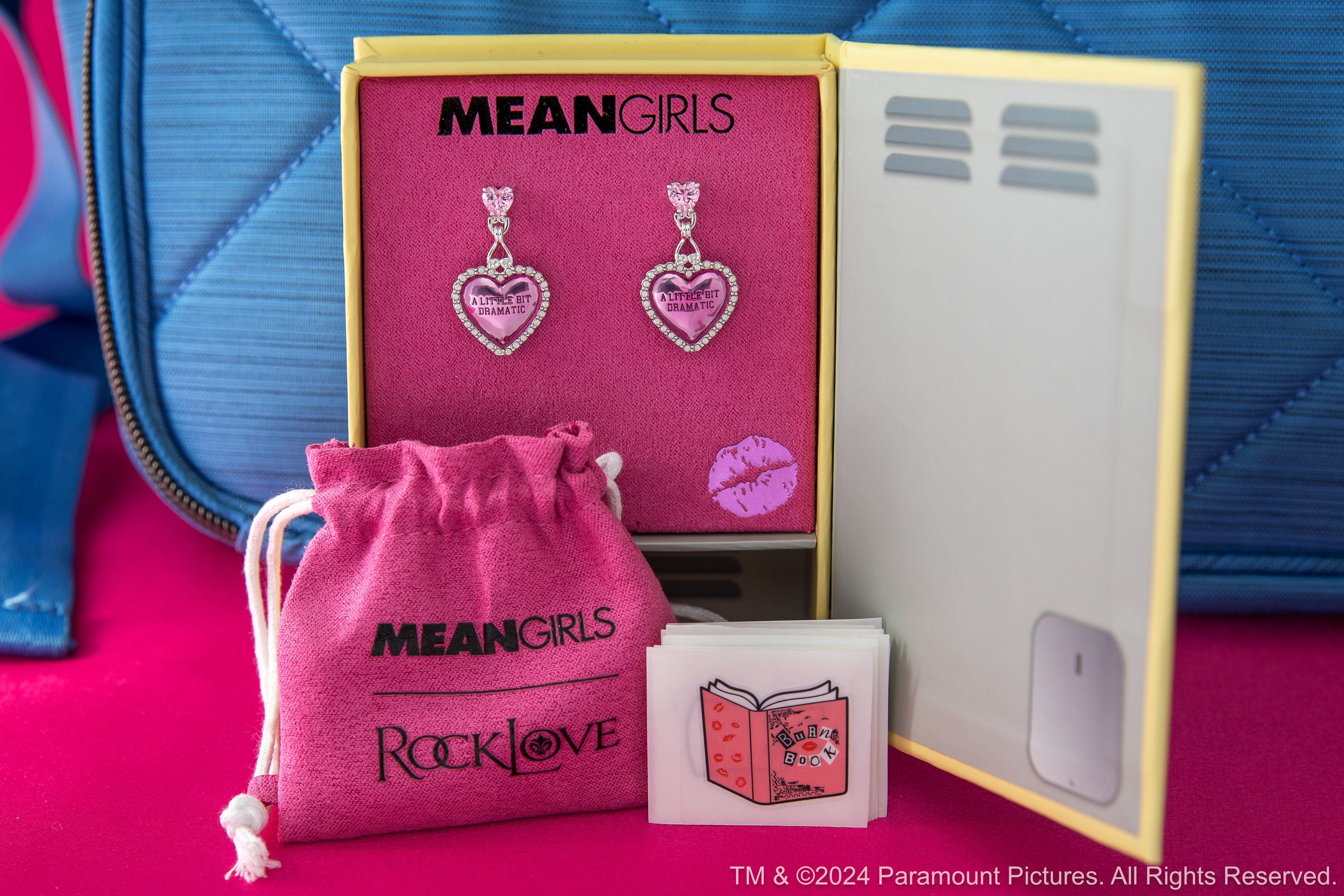 Each piece of Mean Girls | RockLove jewelry is presented in a signature Mean Girls | RockLove Collector’s Box, drawing inspiration from the iconic yellow lockers of North Shore High School. Open the box to reveal vibrant pink flocking, complemented by a branded luxury travel pouch inside. As an added touch, customize your locker with a set of 20 fetch Mean Girls stickers!
