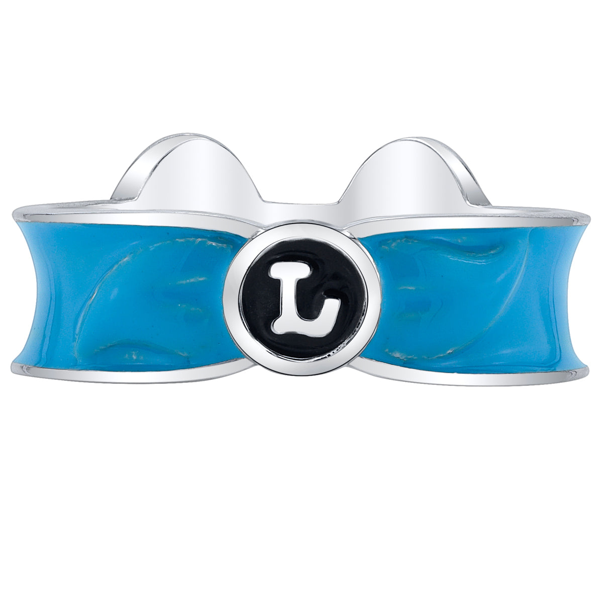 Handcrafted in polished silver plated nickel-free artisan brass, the Leonardo Mask Ring is a must-have for fans of the fearless leader. The mask is sculpted with a playful expression and raised brows at the top of the finger. The full length of the band is coated in glossy enamel in signature blue, adding a bold flash of Turtle Power. The sculpted mask ties continue on the underside, framing a round silver emblem etched with Leo’s initial “L,” which personalizes the design and protects the underside of the band from everyday wear.