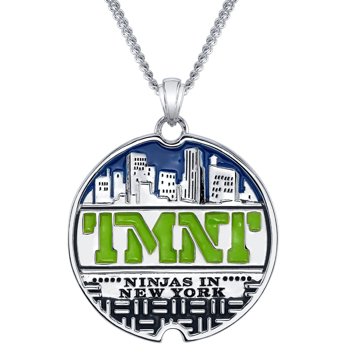 Handcrafted in polished silver plated nickel-free artisan brass, the Sewer Lid Necklace is a love letter to the city where it all began. This official NYCC 2025 Show Exclusive pendant is sculpted with raised, classic NYC manhole cover texture, its recessed background blackened to highlight every detail. The front features “TMNT” filled with bold green enamel, topped by a sculpted New York City skyline against a deep navy enameled sky. Below, “Ninjas in New York” is engraved in crisp block lettering, completing the tribute. Hangs from an adjustable silver plated curb chain, this limited edition necklace is the ultimate collectible for fans who know the best adventures start underground.