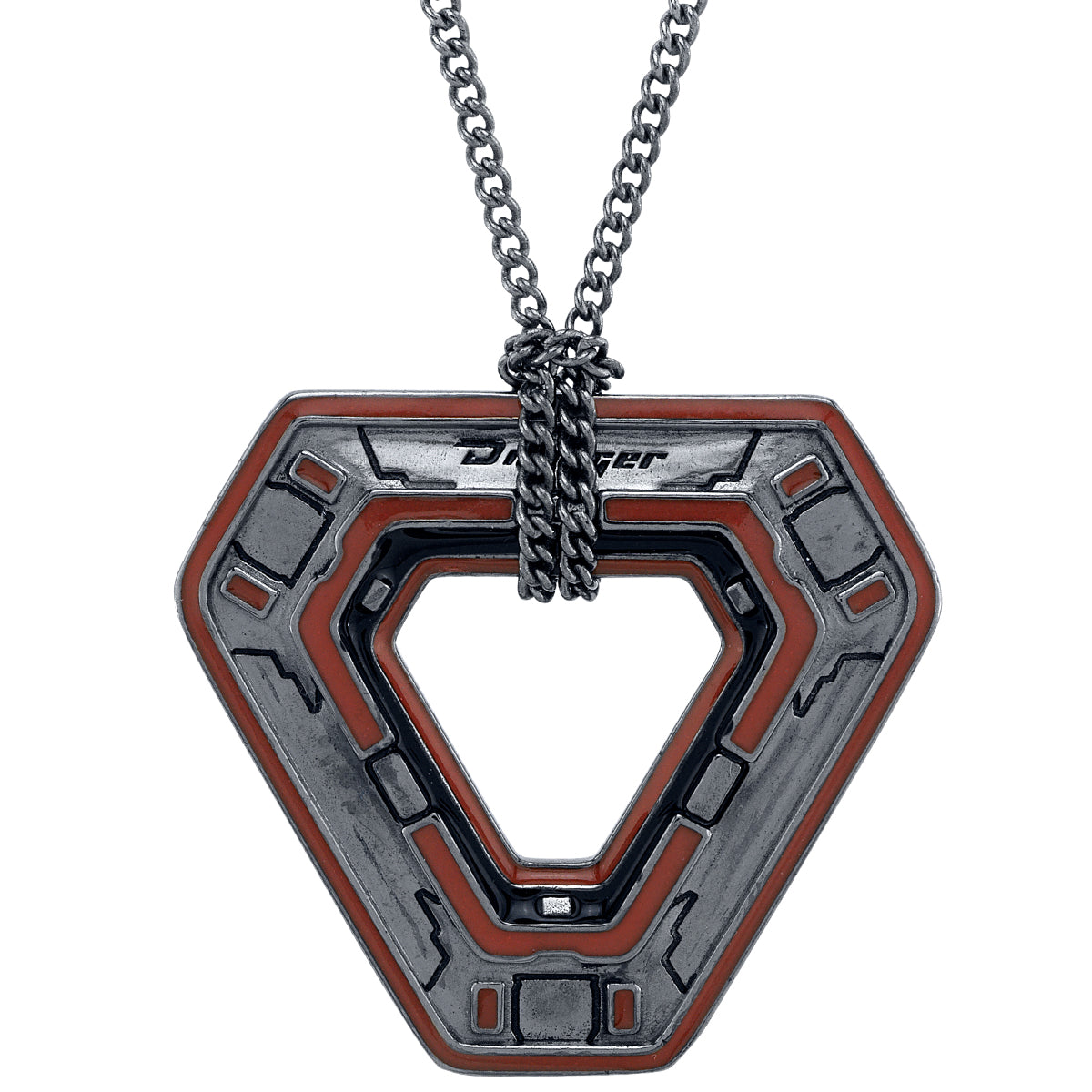 Handcrafted in solid nickel-free artisan brass, the unisex Identity Disk Necklace is a sculpted three dimensional and double sided replica of Ares’ iconic identity disk from Disney TRON: ARES. Featuring a distinct triangular shape and finished in polished black ruthenium, the pendant is suspended from a durable, adjustable curb chain that loops through itself to hold the disk securely in place. The design is accented with hand-painted, UV-reactive enamel that glows vibrant red under black light and in the dark, capturing Ares’ fierce energy across both the real and digital worlds. Bold and striking, this necklace is a statement piece that channels the power and style of Tron into everyday wear.