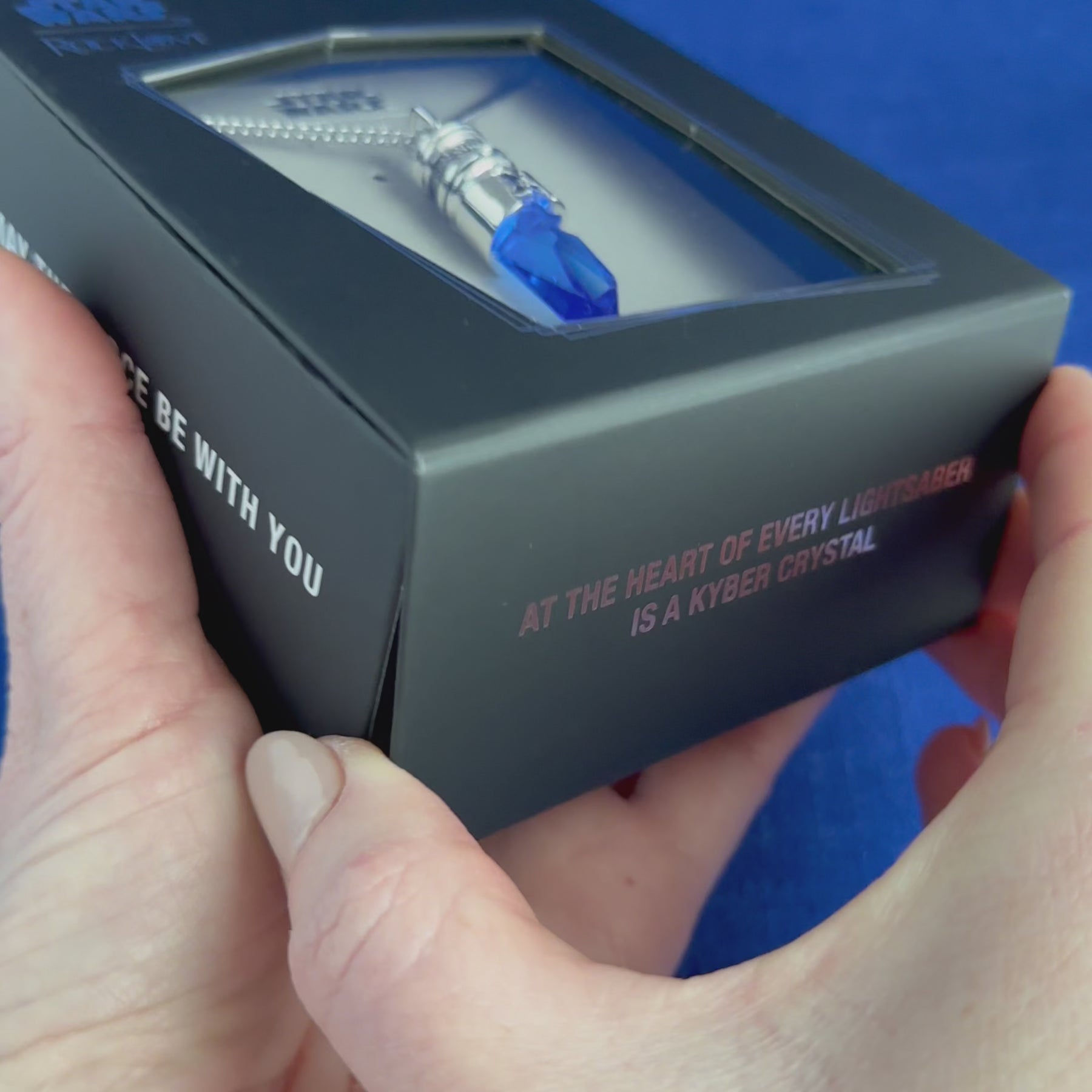 Every STAR WARS | RockLove Kyber Crystal Necklace arrives in a specialized Kyber Crystal Collector's Box, with a magnetic lid that converts into its own angled display case. With silver metallic detailing, the flocked interior is customized to each character.